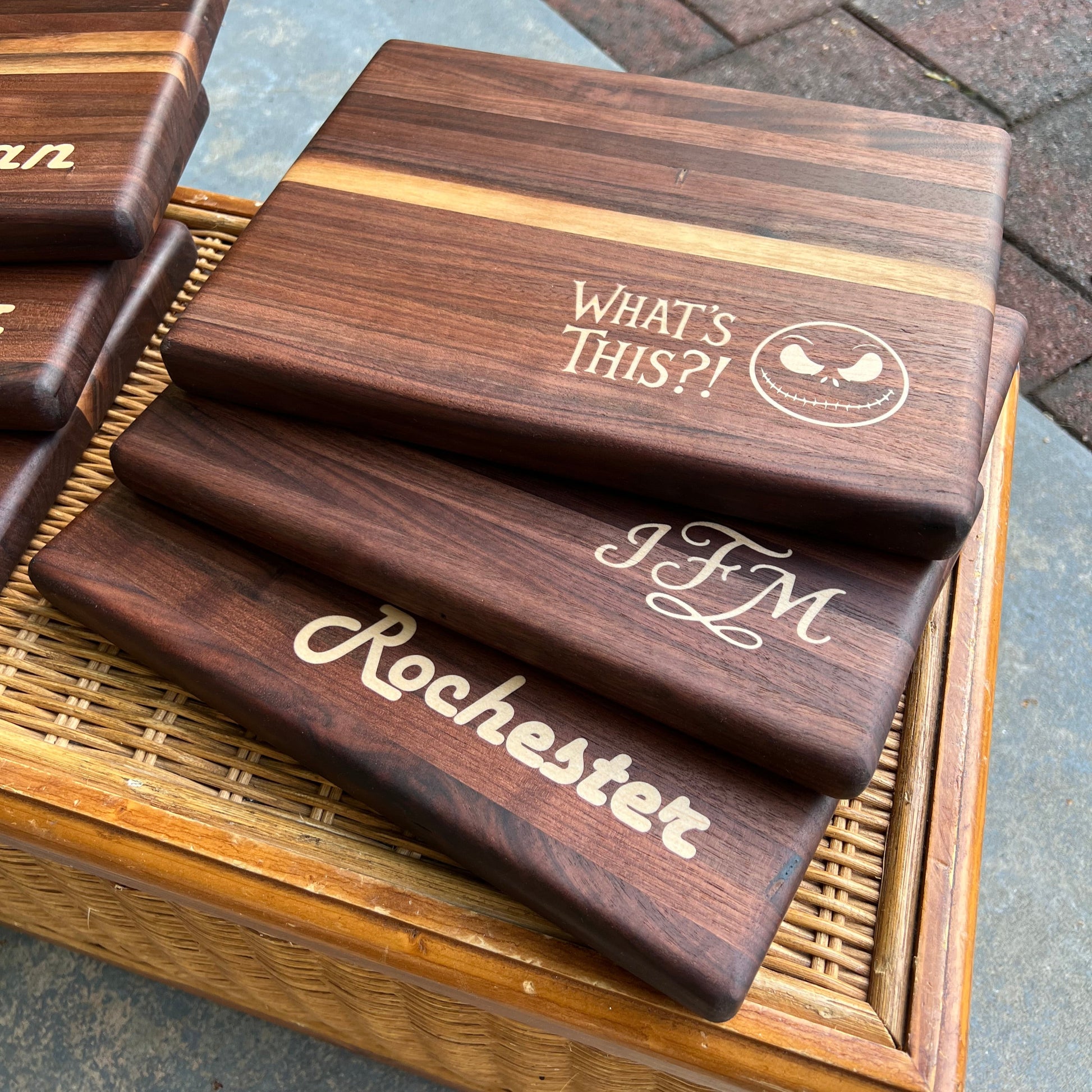 Handcrafted Walnut Cutting Board with Personalized Maple Inlay